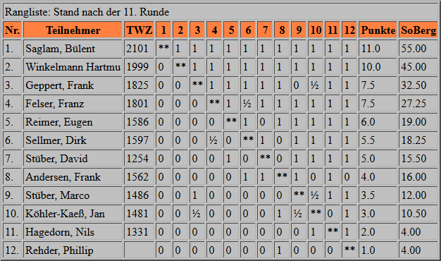 Damit war das Turnier für mich beendet, denn in der 7. Runde war ich spielfrei.